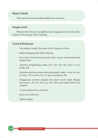 - Kosa kata: tokoh binatang dalam fabel, tempat dan benda-benda