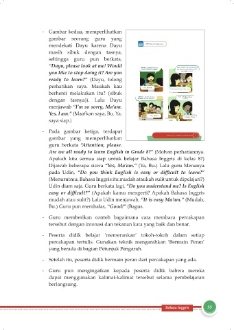 - Guru memberikan contoh bagaimana cara membaca percakapan