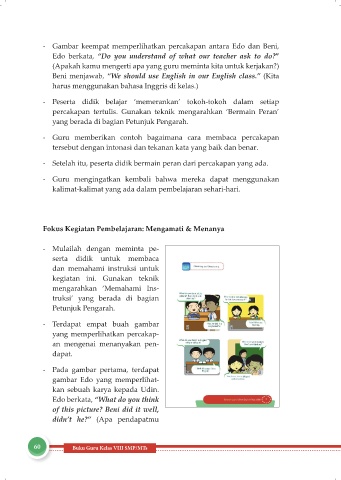 - Guru memberikan contoh bagaimana cara membaca percakapan