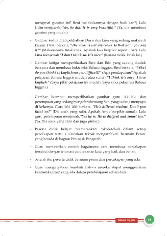 bersama dan membaca buku teks Bahasa Inggris. Beni berkata, “What