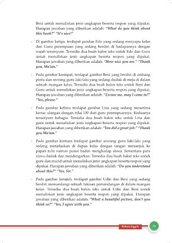 - Pada gambar ketujuh, terdapat gambar Udin dan Beni yang sedang