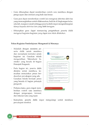 - Guru diharapkan dapat memberikan contoh cara membaca dengan
