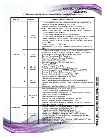 PERANCANGAN AKTIVITI KOLEJ VOKASIONAL GOMBAK TAHUN 2023