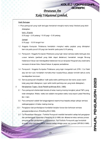 1.2 Anggota Kumpulan Pelaksana hendaklah mengikut waktu pejabat yang ditetapkan