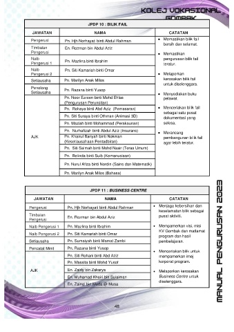 Pengerusi Pn. Hjh Norhayati binti Abdul Rahman ● Memastikan bilik fail