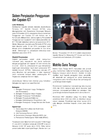Satellite Account (ICTSA). Seterusnya, penunjuk ICT yang memberikan maklumat berkaitan guna tenaga di