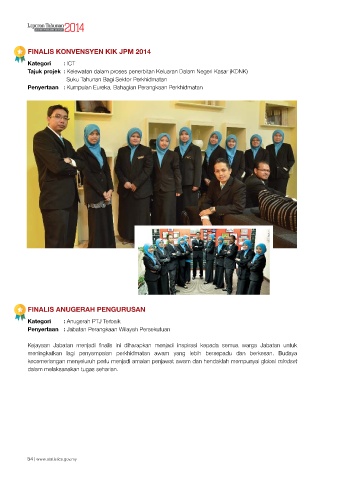Kejayaan Jabatan menjadi finalis ini diharapkan menjadi inspirasi kepada semua warga Jabatan untuk