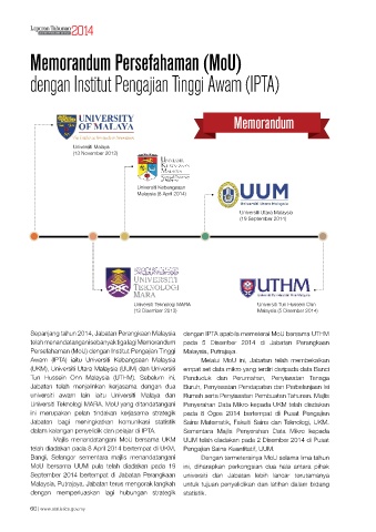Sepanjang tahun 2014, Jabatan Perangkaan Malaysia dengan IPTA apabila memeterai MoU bersama UTHM
