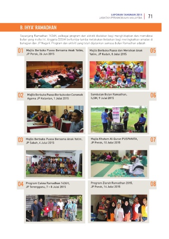 bahagian dan JP Negeri. Program dan aktiviti yang telah dijalankan semasa bulan Ramadhan adalah: