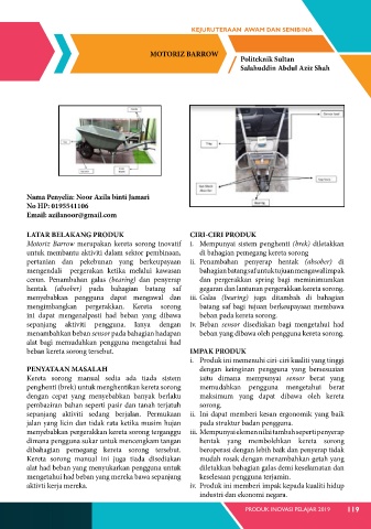 Motoriz Barrow merupakan kereta sorong inovatif i. Mempunyai sistem penghenti (brek) diletakkan