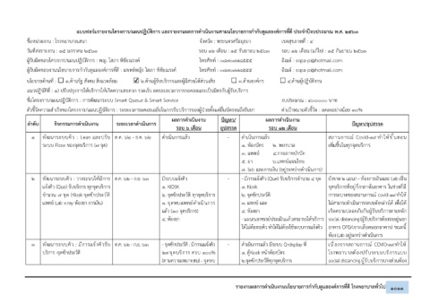 1 พัฒนาระบบคิว : Lean และปรับ ต.ค. 62 - ธ.ค. 62 ดำเนินการแล้ว - ดำเนินการแล้ว สถานการณ์ Covid-19 ทำให้ขั้นตอน