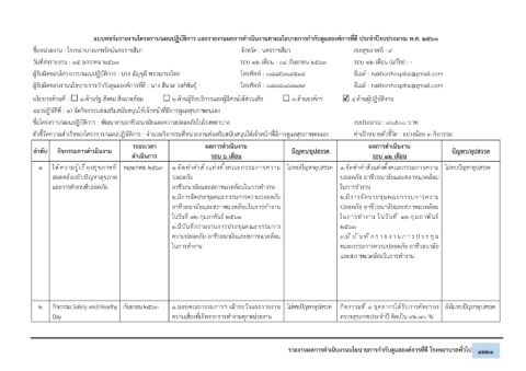 1 ให้ความรู้เรื่องสุขภาพที่ พฤษภาคม 2563 1.จัดทำคำสั่งแต่งตั้งคณะกรรมการความ ไม่พบปัญหาอุปสรรค 1.จัดทำคำสั่งแต่งตั้งคณะกรรมการความ ไม่พบปัญหาอุปสรรค