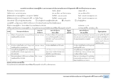 ชื่อโครงการ/แผนปฏิบัติการ : โครงการพัฒนาโปรแกรมแจ้งซ่อมผ่าน ORCODE งบประมาณ : 0 บาท