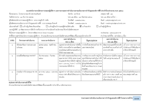 ชื่อโครงการ/แผนปฏิบัติการ : โครงการพัฒนาระบบ Smart Hospital งบประมาณ : 4566195 บาท