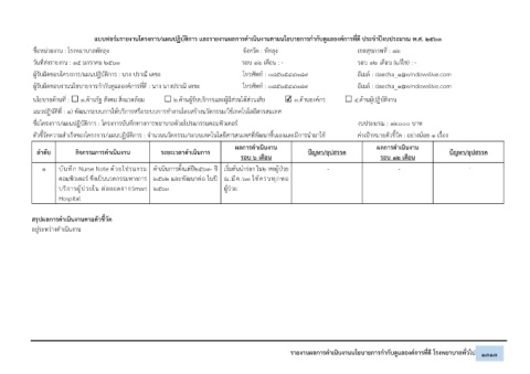 ชื่อโครงการ/แผนปฏิบัติการ : โครงการบันทึกทางการพยาบาลด้วยโปรแกรรมคอมพิวเตอร์ งบประมาณ : 12000 บาท