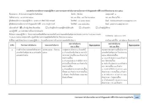 ชื่อโครงการ/แผนปฏิบัติการ : โครงการหน่วยเคลื่อนที่เพื่อความปลอดภัยด้านอาหารและผลิตภัณฑ์สุขภาพ (Mobile Unit for Food and Health งบประมาณ : 1500000 บาท