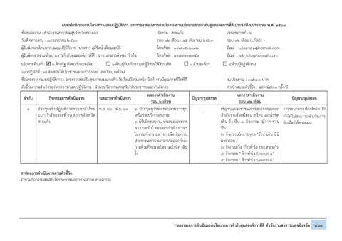 1 ประชุมเชิงปฏิบัติการครอบครัวไทย พ.ย. 62 - มิ.ย. 63 1. ประชุมผู้รับผิดชอบงานจากทุก - เชิญชวนประชาชนเข้าร่วมกิจกรรมออก การระบาดของโรคโควิด-19
