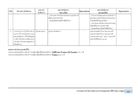 - รายงานผลการดำเนินงานต่อประธานทุกสัปดาห์ - เก็บรวบรวมข้อมูลระยะเวลารอรับบริการ