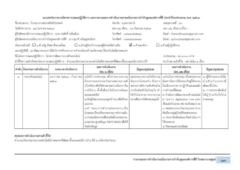 ตัวชี้วัดความสำเร็จของโครงการ/แผนปฏิบัติการ : จำนวนนวัตกรรม/ระบบเทคโนโลยีสารสนเทศที่พัฒนาขึ้นเองและมีการนำมาใช ้ ค่าเป้าหมายตัวชี้วัด : อย่างน้อย 1 เรื่อง