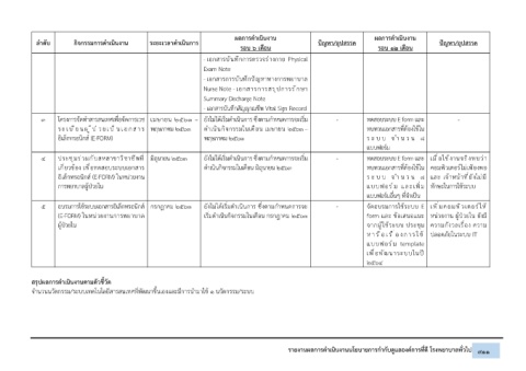 4 ประชุมร่วมกับสหสาขาวิชาชีพที่ มิถุนายน ๒๕๖๓ ยังไม่ได้เริ่มดำเนินการ ซึ่งตามกำหนดการจะเริ่ม - ทดสอบระบบ E form และ เมื่อใช้งานจริงพบว่า