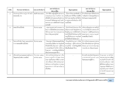 ลำดับ กิจกรรมการดำเนินงาน ระยะเวลาดำเนินการ ปัญหา/อุปสรรค ปัญหา/อุปสรรค