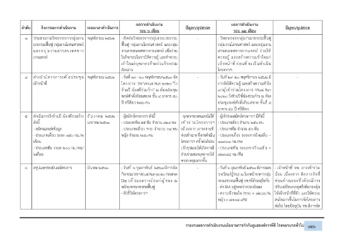 ลำดับ กิจกรรมการดำเนินงาน ระยะเวลาดำเนินการ ปัญหา/อุปสรรค ปัญหา/อุปสรรค