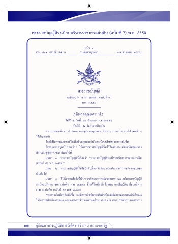 ่ ี พระราชบัญญัติระเบียบบริหารราชการแผ่นดิน (ฉบับท 7) พ.ศ. 2550 186 คู่มือแนวทางปฏิบัติการจัดโครงสร้างหน่วยงานของรัฐ คู่มือแนวทางปฏิบัติการจัดโครงสร้างหน่วยงานของรัฐ