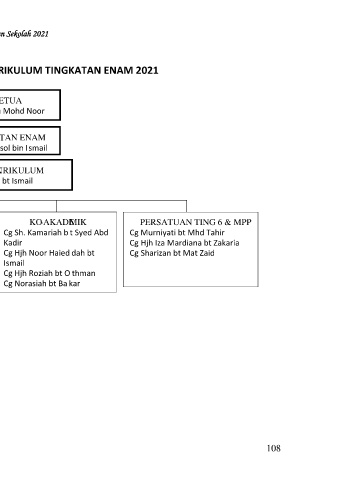 CARTA PENGURUSAN UNIT KOKURIKULUM TINGKATAN ENAM 2021