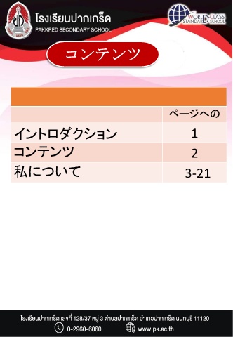 コンテンツ ページへの イントロダクション 1 コンテンツ 2 私について 3-21