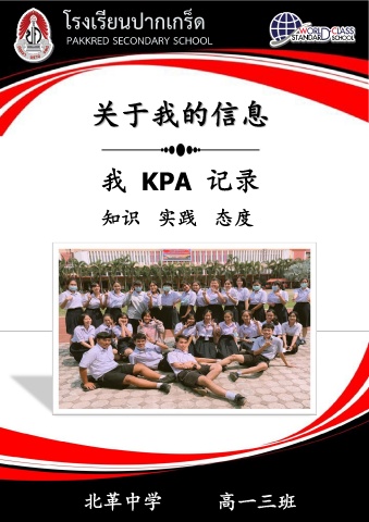 โรงเรียนปากเกร็ด PAKKRED SECONDARY SCHOOL 关于我的信息 我 KPA 记录 知识 实践 态度 北革中学 高一三班