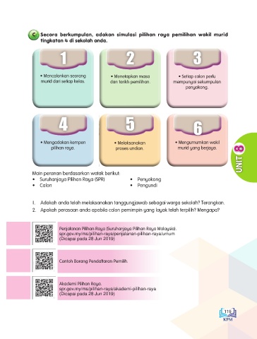 C Secara berkumpulan, adakan simulasi pilihan raya pemilihan wakil murid
