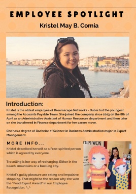 Kristel is the oldest employee of Dreamscape Networks - Dubai but the youngest