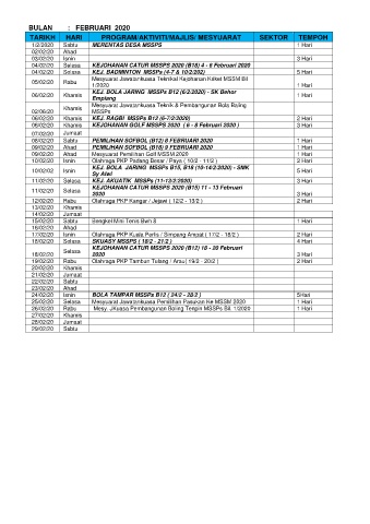 TARIKH HARI PROGRAM/AKTIVITI/MAJLIS/ MESYUARAT SEKTOR TEMPOH