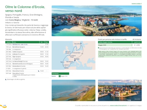 148 Scoprite e prenotate le escursioni prima di partire su www.costa.it/escursioni e in agenzia di viaggio