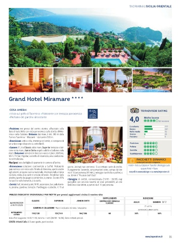 Ristorazione: colazione continentale a buffet. Ristorante giorno. Animali non ammessi. Si accettano carte di credito. Hotel + Volo su Catania + Transfer o Noleggio auto