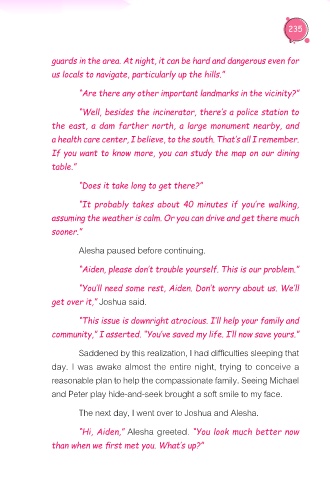 “Hi, Aiden,” Alesha greeted. “You look much better now