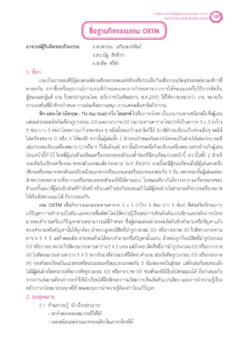 (X) ไปติดบนกระดานตาราง 5 X 5 จะกลับมาที่ฝ่ายแรกที่ได้ตอบค�าถาม ฝ่ายใดติดรูปวงกลม (O) หรือกากบาท