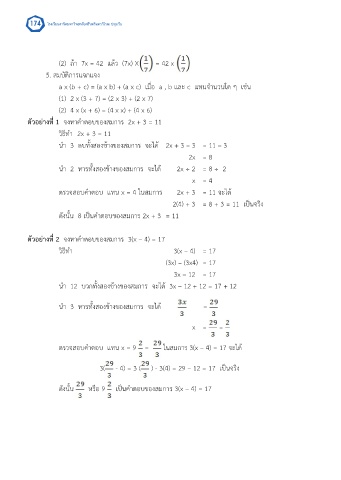 ดังนั้น หรือ 9 เป็นค�าตอบของสมการ 3(x – 4) = 17