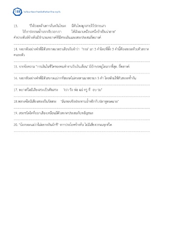 16. จงยกตัวอย่างค�าที่มีตัวสะกดแม่กกที่สะกดไม่ตรงตามมาตรามา 3 ค�า โดยห้ามใช้ตัวสะกดซ�้ากัน