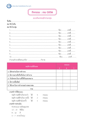 พฤติกรรมที่ท�าเป็นบางครั้ง ให้ 2 คะแนน