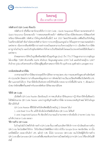 ที่ยาวและจดจ�าได้ยาก คิวอาร์โค้ดจึงเป็นช่องทางหนึ่งที่ช่วยให้เราสะดวกมากยิ่งขึ้นใช้งานง่าย ๆ เพียงแค่เรา