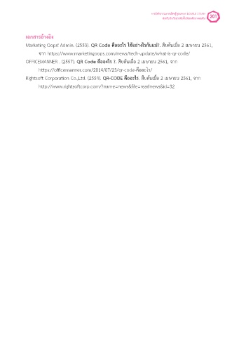 Marketing Oops! Admin. (2553). QR Code คืออะไร ใช้อย่ำงไรกันแน่?. สืบค้นเมื่อ 2 เมษายน 2561,