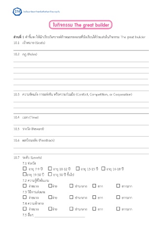 ส่วนที่ 1 ค�าชี้แจง ให้นักเรียนวิเคราะห์ลักษณะของเกมที่นักเรียนได้ร่วมเล่นในกิจกรรม The great builder