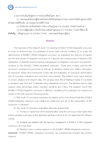ค�ำส�ำคัญ : หลักสูตรบูรณาการ DOUBLE STEAM สมรรถนะส�าคัญของผู้เรียน