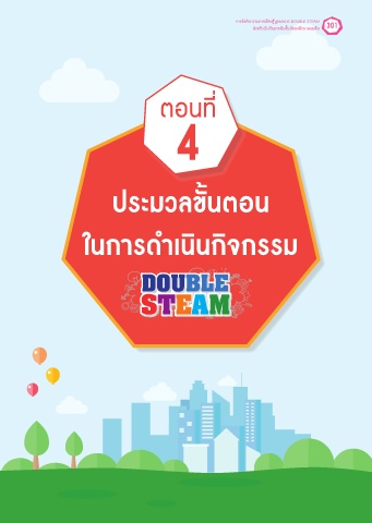 การจัดกิจกรรมการเรียนรู้บูรณาการ DOUBLE STEAM 301 ส�าหรับนักเรียนระดับชั้นมัธยมศึกษาตอนต้น ตอนที่ 4 ประมวลขั้นตอน ในการดำาเนินกิจกรรม