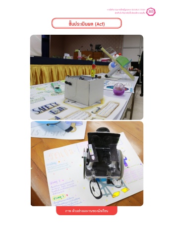 การจัดกิจกรรมการเรียนรู้บูรณาการ DOUBLE STEAM 305 ส�าหรับนักเรียนระดับชั้นมัธยมศึกษาตอนต้น ขั้นประเมินผล (Act) ภำพ ตัวอย่ำงผลงำนของนักเรียน