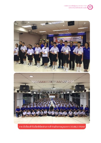 การจัดกิจกรรมการเรียนรู้บูรณาการ DOUBLE STEAM 307 ส�าหรับนักเรียนระดับชั้นมัธยมศึกษาตอนต้น ภำพ นักเรียนเข้ำรับเกียรติบัตรผ่ำนกำรเข้ำร่วมกิจกรรมบูรณำกำร DOUBLE STEAM