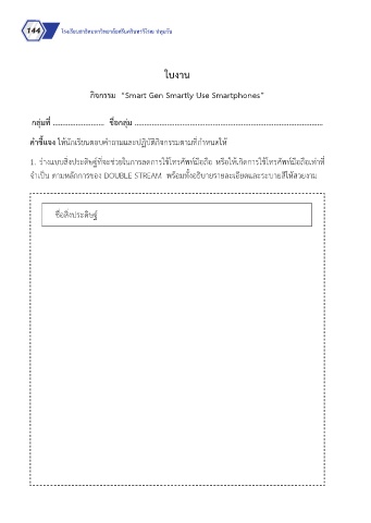 กลุ่มที่ ……………………… ชื่อกลุ่ม ………………………………………………………………………………………