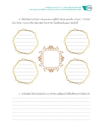 5. นักเรียนคิดว่าได้ประโยชน์อะไรจากการท�ากิจกรรมนี้และน�าไปใช้ในชีวิตประจ�าวันได้อย่างไร
