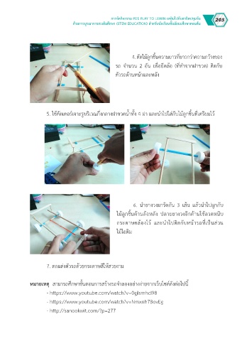 6. น�ายางวงมารัดกัน 3 เส้น แล้วน�าไปผูกกับ